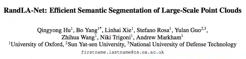 牛津大学和国防科技大学合作的一篇题为“RandLA-Net: Efficient Semantic Segmentation of Large-Scale Point Clouds”的论文已被今年CVPR接收,今天为大家解读这篇论文。