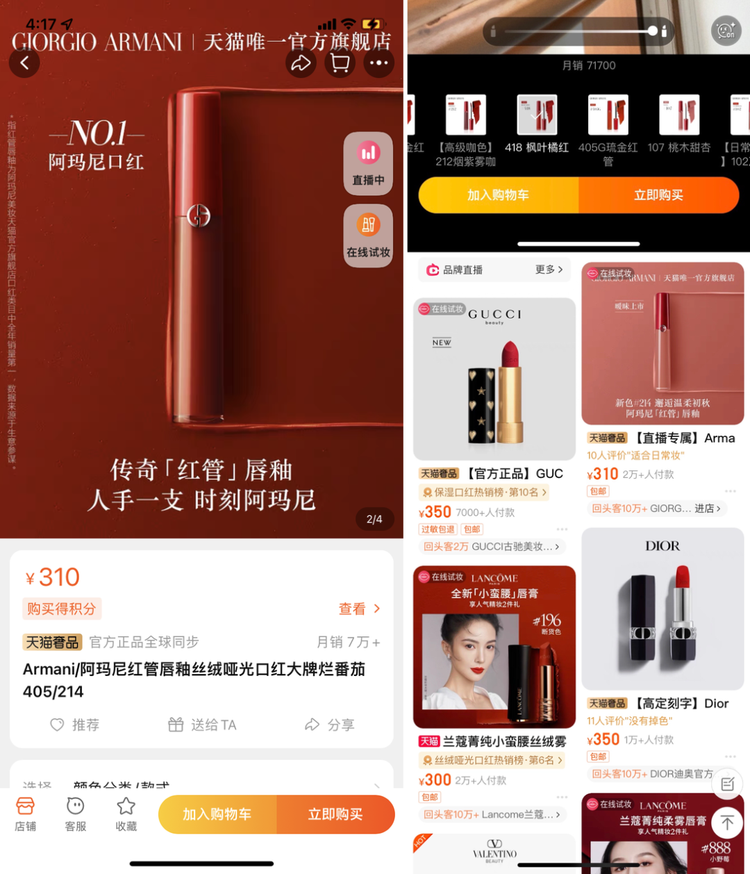 该功能还支持粉底液、眼影等彩妆产品,相信后续也会开放支持更多产品。对于想送女生口红但搞不懂色号的朋友或者懒得去专柜试妆、想在线上闭眼入的女生们,这都是一个相当实用的功能了,有了它,再也不会送出死亡芭比粉了