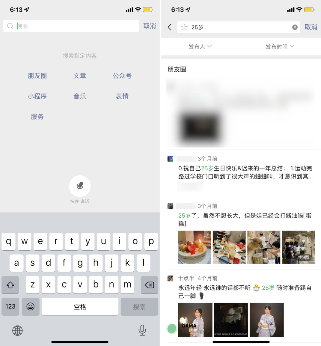 顶部的搜索栏对于大家来说,应该算不得什么隐藏操作了。但你也许不知道,它可以用来精确查询微信朋友圈的内容。