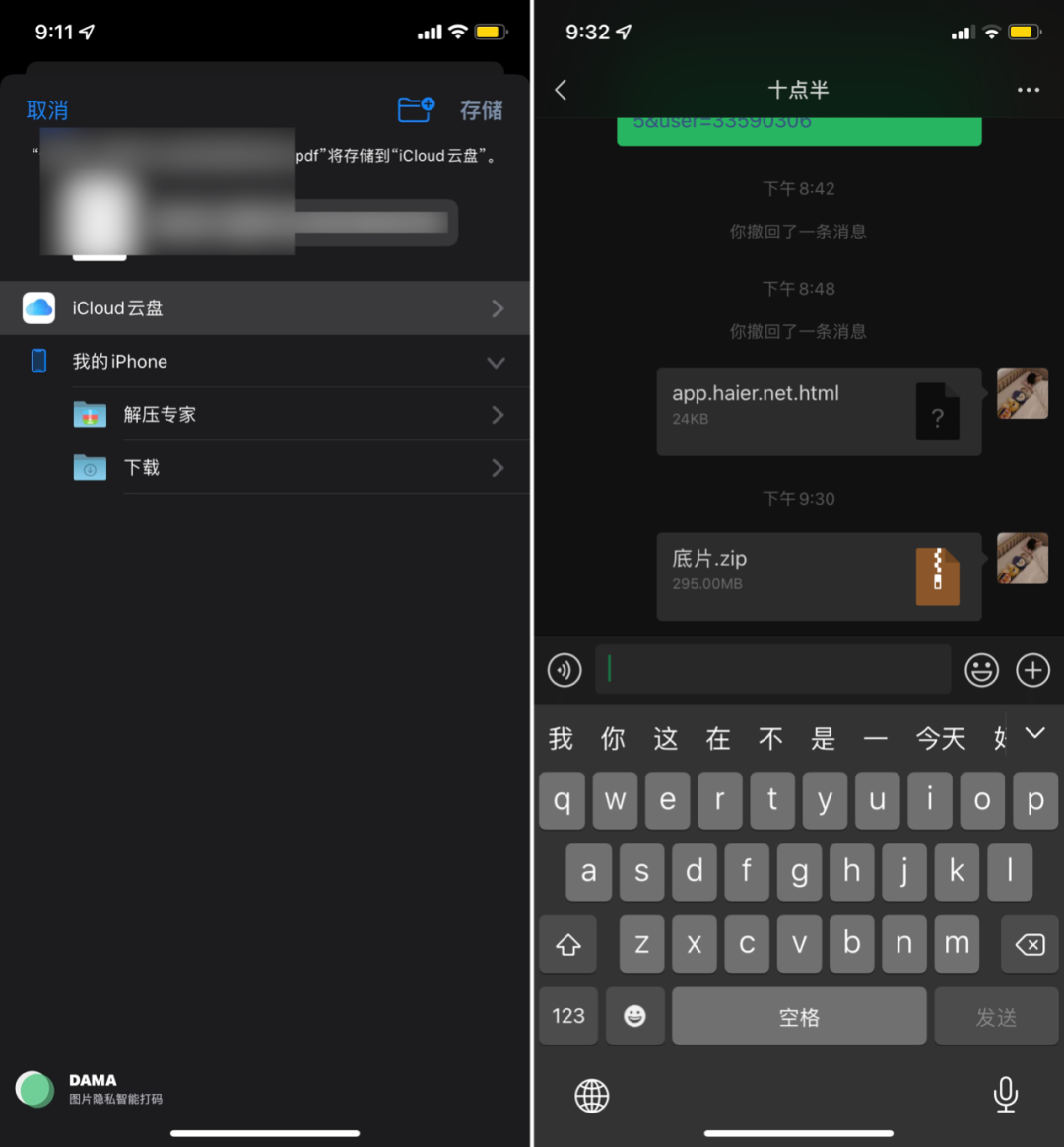 对于以上这种场景,用手机上的微信传送电脑文件变成了一个强需求,这时候可以先将文件传到 iCloud 云盘,再从「微信 > 文件 > iCloud」中发送,文件大小也没有限制(传输速度比百度网盘快得多),即使发送的文件为压缩包,只要手机里有安装对应的解压软件,也可以打开。