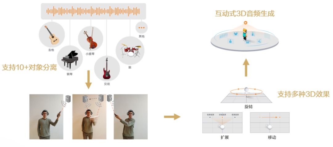 分离之后的空间音频渲染也存在一些难题,比如要解决因头型、肩宽等人体体征的差异带来的 HRTF(头相关传递函数)因人而异的难题,还要营造空间中声音的反射、散射、干涉等物理现象。