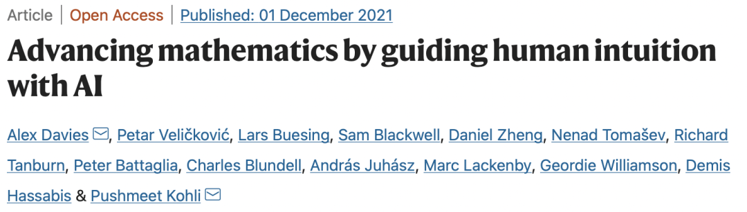 论文「Advancing mathematics by guiding human intuition with AI」已于12月1日在Nature发表。