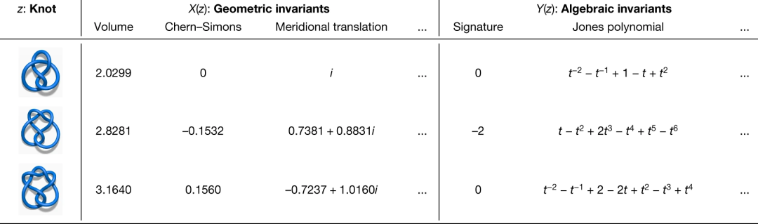研究人员的假设是,在一个纽结的双曲不变量和代数不变量之间存在着一种未被发现的关系。