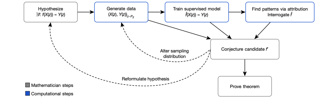 通过训练机器学习模型来估计特定数据 PZ 分布上的函数,该过程有助于引导数学家对假设函数 f 的直觉思维。
