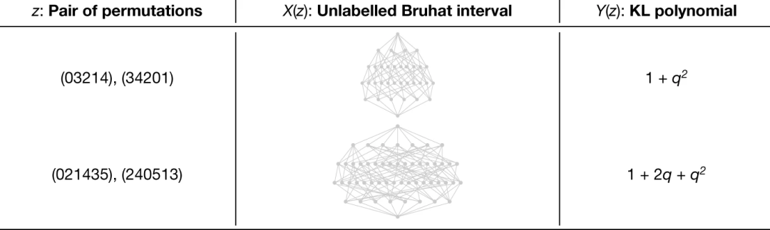 其中,Bruhat区间是一个图表,它代表了通过一次只交换两个对象来反转对象集合顺序的所有不同方式。而KL多项式告诉了数学家一些关于这个图在高维空间中存在的不同方式。有趣的结构只有在Bruhat间隔有100或1000个顶点时才开始出现。