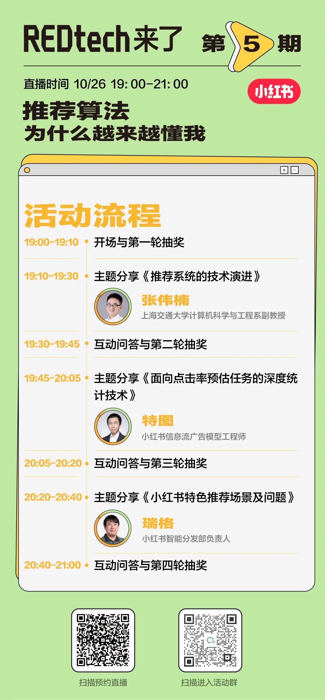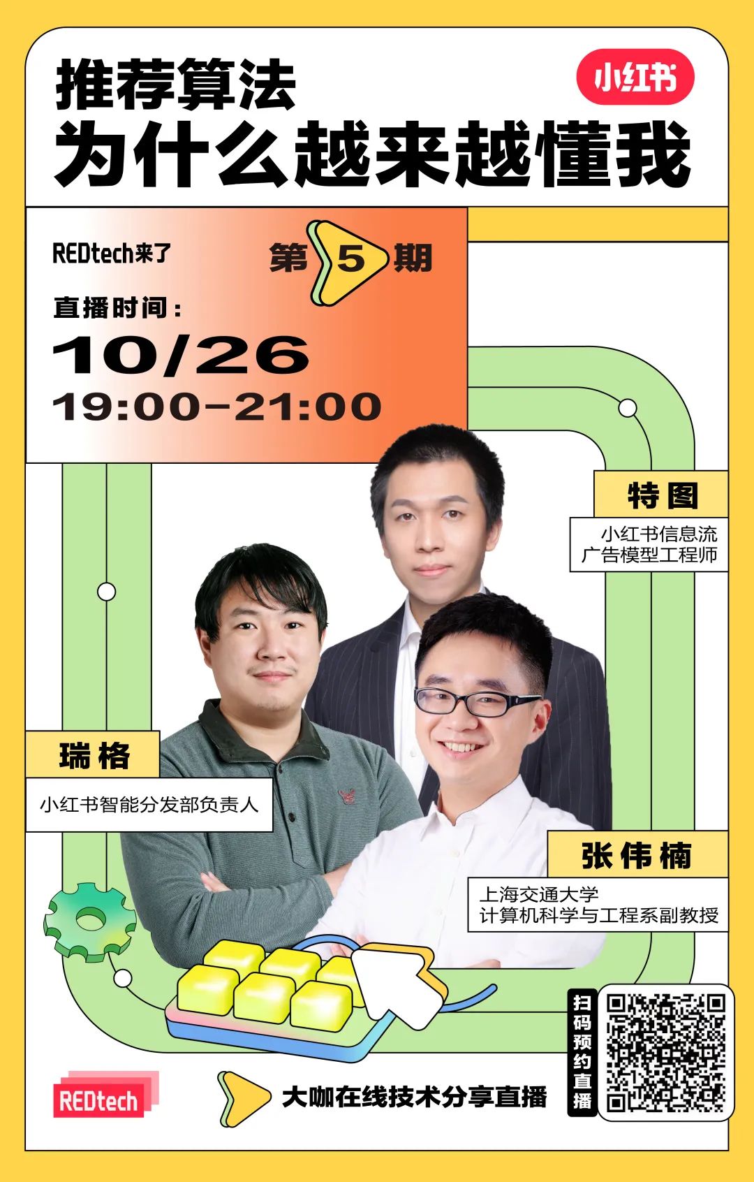 10月26日,由小红书技术团队出品的技术直播节目【REDtech 来了】第五期《推荐算法为什么越来越懂我》即将开播。