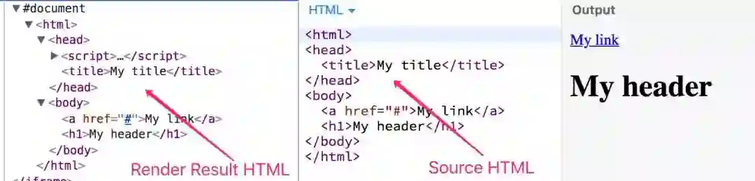 浏览器请求动态逻辑页面, 网络返回的 HTML 源码与页面渲染完成后的 HTML 有差异. 动态逻辑页面的源码和渲染结果有差异: