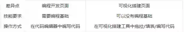 用页面可视化搭建工具来搭建页面与前端工程师在页面上搬砖, 都是搭建页面, 区别在于实现页面搭建的方式. 做个简单对比: