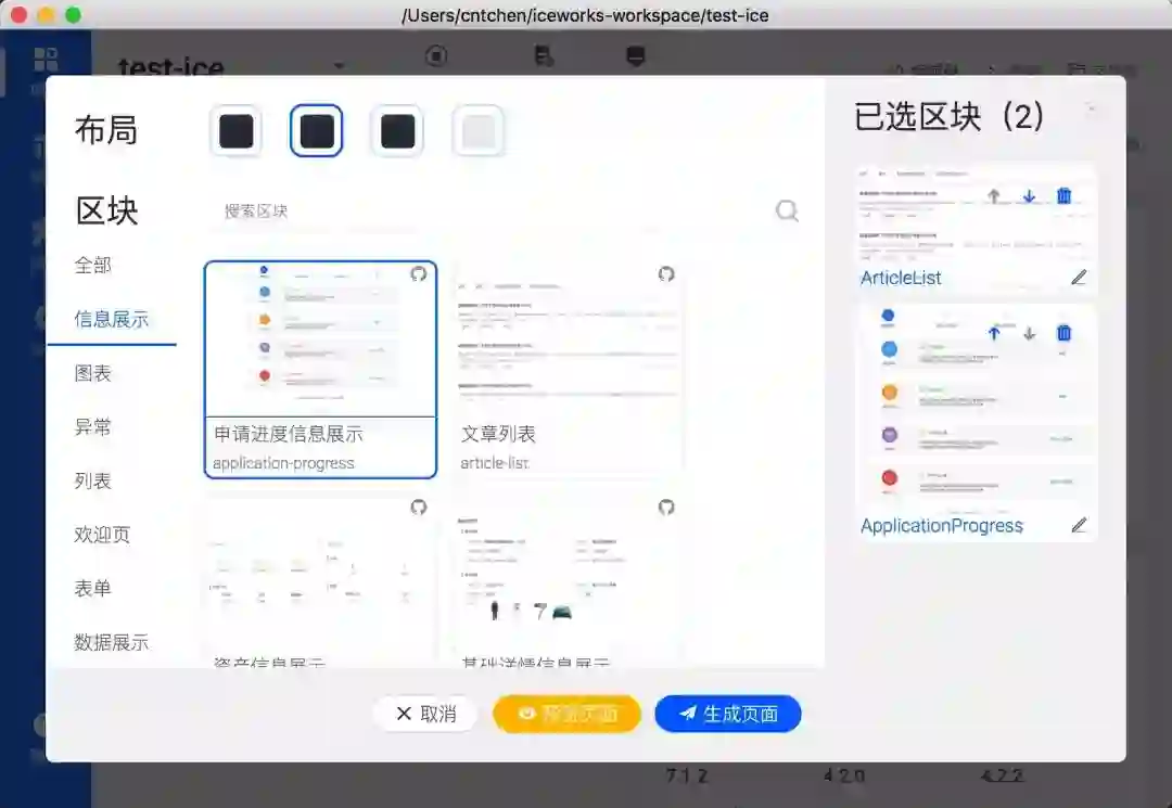 使用"物料-区块", 非前端开发人员可以快速搭建出可用、符合规范的页面.