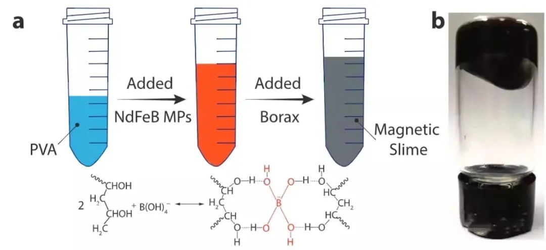 它的真实身份,是一个基于非牛顿流体的磁驱动黏液机器人,由强钕磁铁、硼砂和聚乙烯醇等材料混合制成。