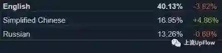 2017年6月steam报告中显示的不同语种用户占比