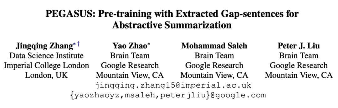 Pre-training with Extracted Gap-sentences for Abstractive Summarization,简称PEGASUS