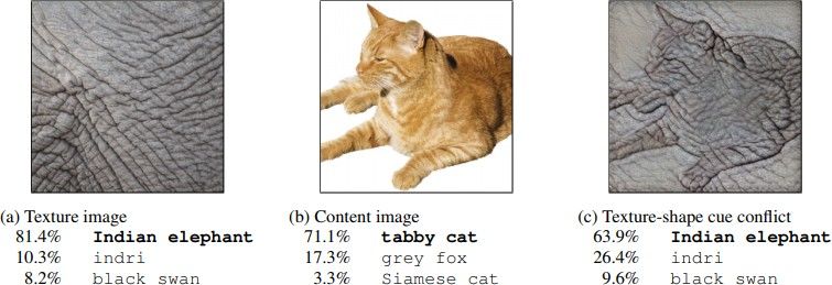 计算机视觉的主要基础数据仍然是ImageNet上的对象分类(一个标记为10k类的10M图像数据集)。论文《ImageNettrained CNNs are biased towards texture; increasing shape bias improves accuracy and robustness》证明所有CNN架构都偏向于纹理。CNN通常的解释是,第一层识别小的形状,下一层开始识别图像中最大的形状,如眼睛、嘴和腿等。