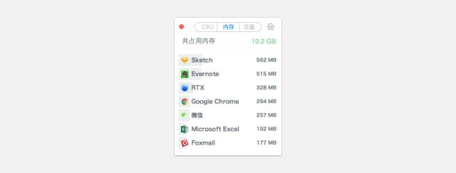 如上图所示,腾讯电脑管家Dashboard小浮窗的主题——帮助用户实时监控机器使用情况。为此,在小浮窗中呈现CPU、内存和流量关键指标实时数据。同时,也提供了各指标资源占用较高应用的实时数值监测,让用户获知更多详细数据。