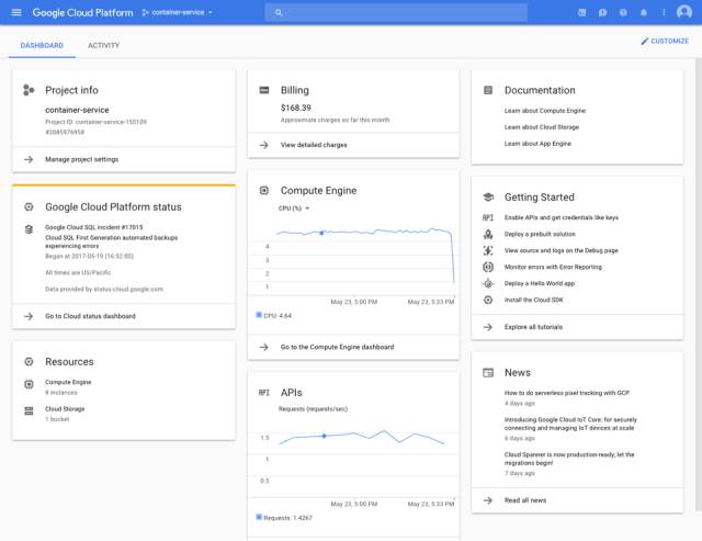 即将有相关联的内容进行分组呈现,让Dashboard内容归类而不杂乱无章。如 Google Cloud Platform 的Dashboard页面,将内容按卡片分为Project info、Billing、Documentation等。同时,卡片与卡片之间也进行了分组,左边是资源信息,中间是指标监控,右边是文档帮助。