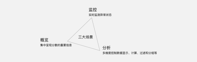 Dashboard一般通过重要内容和核心数据来告知用户:“业务整体状况如何?有哪些关键指标?各指标的运行情况分别如何?哪些指标出现异常?需要用户做些什么?”。由此可知,Dashboard主要应用于监控、分析和概览三大场景。