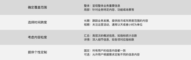 需要注意的是,选定Dashboard内容时,不一定需要全部满足上述提到的三个方面。但精确、符合用户需求的内容,应该都是紧扣主题,又能引导用户行动和符合用户认知。