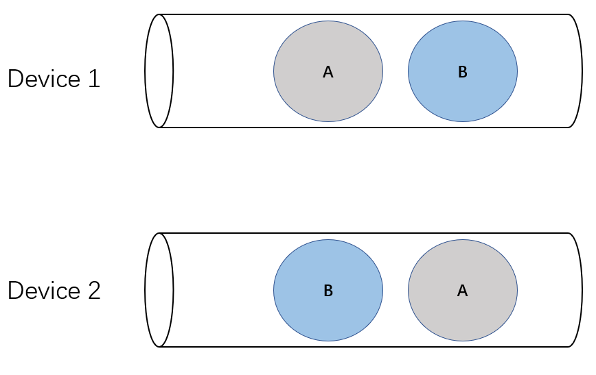 如下图所示,每个设备上多分配几个队列,把 A 和 B 调度到不同的队列上去,也能避免死锁。