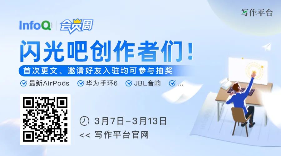 InfoQ 会员周即将开始!写作平台为各位创作者准备了超多惊喜奖品,记得准时参加哦!