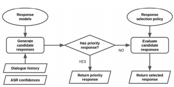 该系统包含 22 个响应模型,包括基于检索的神经网络、基于生成的神经网络、基于知识库的问答系统和基于模板的系统。候选模型响应的示例如表 1 所示。