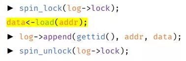 “哲学家吃中餐问题” 的 NP - 完全性 (固有的困难) 并不意味着我们无法在实际中解决它。为了实现并发程序的动态分析,必须在运行时观测并发程序的执行,而观测却并不局限于 “线程本地的记录”。我们希望有一台 “摄像机” 拍摄下哲 ♂ 学 (家吃饭) 的全过程,而修改程序的代码或运行时环境,恰好能实现这样的摄像机:为所有共享内存的读 / 写操作上锁,并在锁的保护下记录它们发生的顺序,就得到了共享内存访问的日志,如图 2 所示。从此意义上,观测并发程序执行又是容易的。