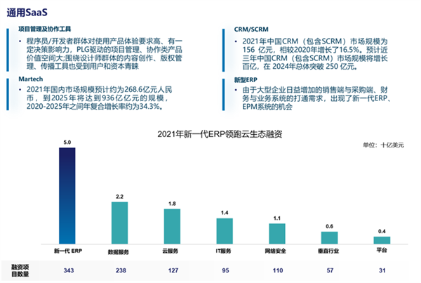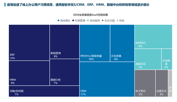 趋势六:通用软件由销售驱动往产品驱动转型。疫情加速线上办公用户习惯培育,普遍从销售引导型(SLG)向产品引导型(PLG)转型。目前行业发展现状是:S/CRM、ERP、HRM、数据中台和财税等领域逐步细分。