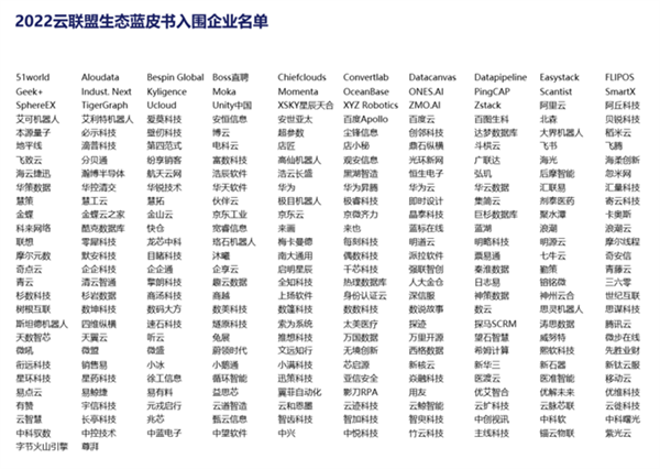 附:2022云联盟生态蓝皮书入围企业名单