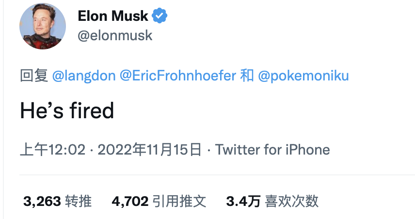 那么,他究竟是犯了多大的错误?亦或是什么仇什么怨,需要马斯克亲自下场回应将其解雇?