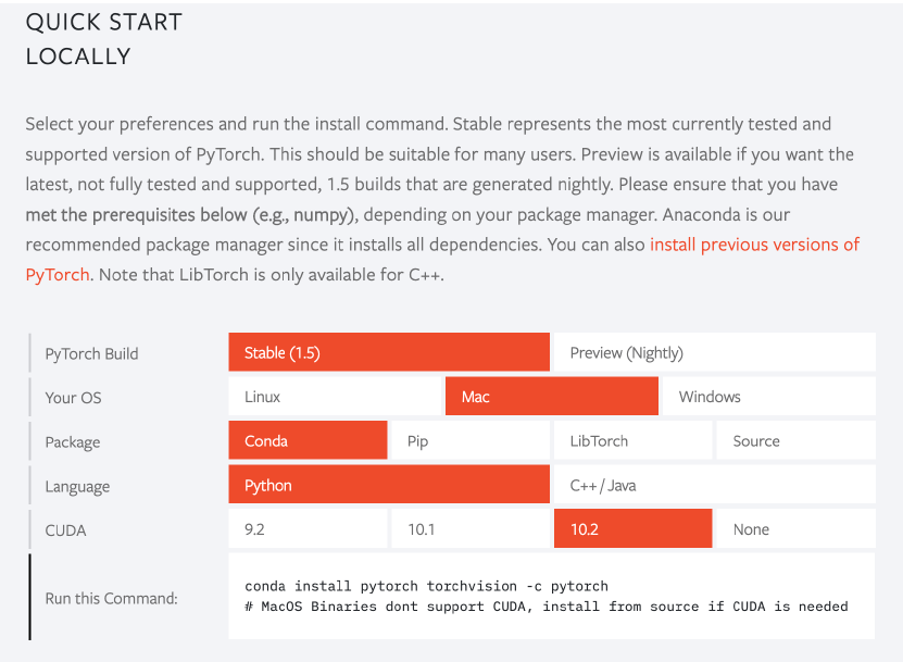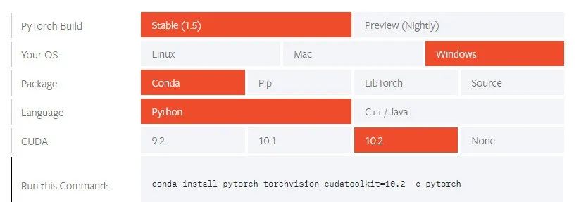 conda install pytorch torchvision cudatoolkit=10.0 -c pytorch