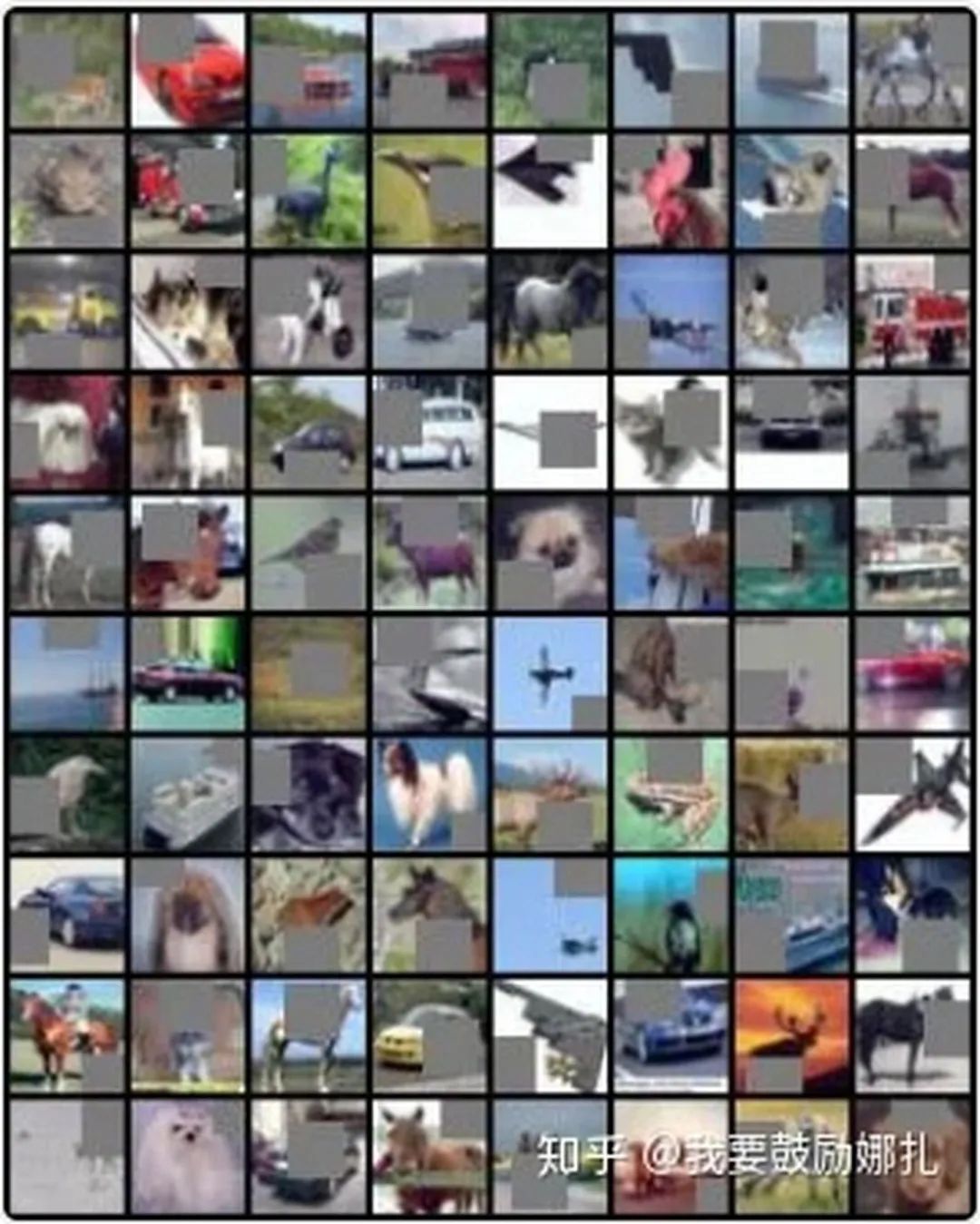 Cutout是一种新的正则化方法。原理是在训练时随机把图片的一部分减掉,这样能提高模型的鲁棒性。它的来源是计算机视觉任务中经常遇到的物体遮挡问题。通过cutout生成一些类似被遮挡的物体,不仅可以让模型在遇到遮挡问题时表现更好,还能让模型在做决定时更多地考虑环境(context)。