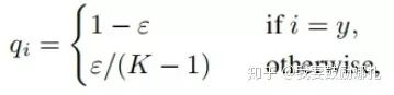 其中,ε是一个小的常数,K是类别的数目,y是图片的真正的标签,i代表第i个类别,q_i是图片为第i类的概率。
