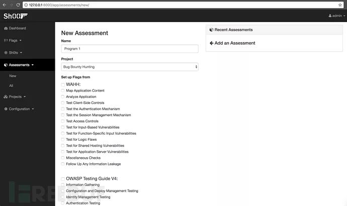 Sh00t是一个高可定制的渗透测试管理工具,它强调让测试人员手动进行安全测试,并让你专注于执行安全测试任务的本身。此外,Sh00t还为我们提供了测试用例的待办事项清单,以及可以使用自定义的漏洞报告模板来生成漏洞报告。