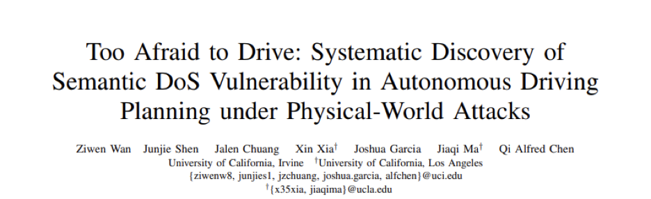 这项将在 4 月底正式发表于 NDSS 2022(计算机安全四大顶会之一)的研究,揭示了自动驾驶场景下多个以前未知的语义 DoS 漏洞。