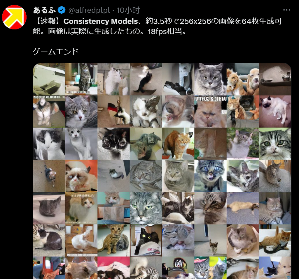 有网友将其视为扩散模型的有力竞争者!并表示 Consistency Models 无需对抗性训练,这使得它们更容易训练,不容易出现模式崩溃。