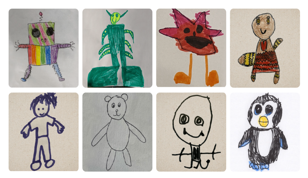 孩子们画的人物有各种各样的身体形状,这些都远远超出了AI所见过的传统人的头部、手臂、腿部和躯干的形状。