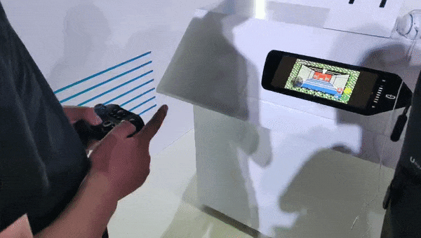 不过,是需要外接手柄操作,有种玩红白机的感觉。现场的小哥还感叹,这款游戏的确有点难呢。