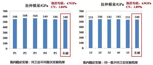 2016年1月,宁波材料所在国内率先实现了国产M55J制备技术重大突破,同年9月进行了制备技术验证,并获得拉伸强度4.15GPa、拉伸模量585GPa的高强高模碳纤维,后续研究进一步实现了国产M55J高强高模碳纤维连续稳定生产,纤维主体性能批间批内离散系数<5%。随后,宁波材料所针对国产高强高模碳纤维工艺分析、结构研究、性能优化开展了详细研究,尤其是重点开展高温石墨化环境中碳纤维拉伸强度保留率研究工作,近期成功制备拉伸强度5.24GPa、拉伸模量593GPa的高强高模碳纤维,与日本东丽M60J高强高模碳纤维(拉伸强度3.92GPa、拉伸模量588GPa)相比,继续保持了拉伸强度上的优势。