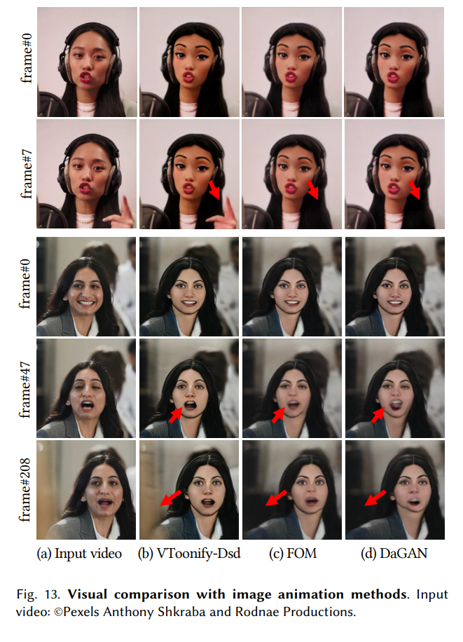 除了原始的高级风格代码外,他们还训练编码器提取输入帧的多尺度内容特征作为生成器的附加内容条件,以便在风格转换过程中更好地保存帧的关键视觉信息。