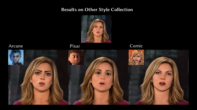 在 collection-based 人像视频风格转换中,研究者利用具有代表性的 Toonify 作为主干,它使用原始的 StyleGAN 架构,并仅以风格代码为条件。