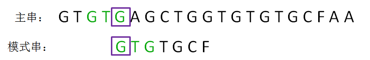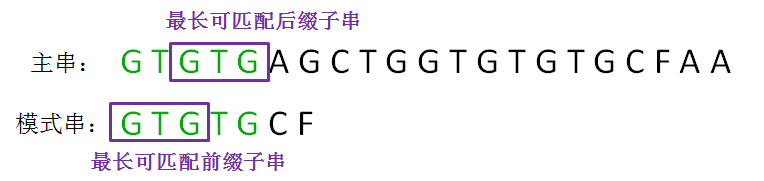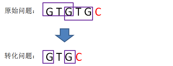 我们可以发现,在前缀“GTGTG”当中,后三个字符“GTG”和前三位字符“GTG”是相同的: