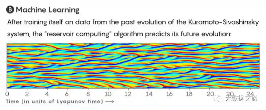 用Kuramoto-Sivashinsky系统过去的演进数据进行训练后,“储水池计算”算法预测其未来演进。