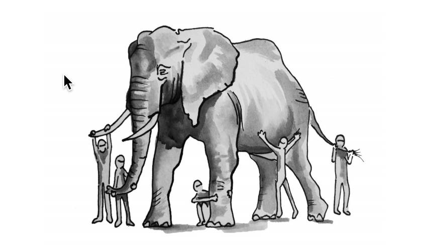 比如这张图,有人摸到大象的尾巴,像一个绳子;有的人摸到肚子,像一堵墙。每个人从不同的会议上或者书籍上获取 DevOps 观念的时候没有统一的观念,最终实现 DevOps 的方案也不同。实现的好的话就像顾宇老师或者华强大哥那种,有明确的方案产生。实现得不好就会变成这样,一个很畸形的大象。