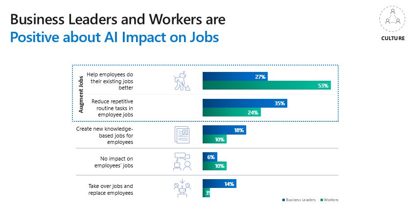 值得庆幸的是,该行业的大多数企业领导人和员工相信,人工智能将对他们的工作产生积极影响。
