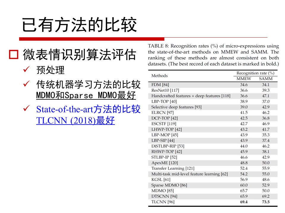 贲教授还提出被试独立和被试依赖两种微表情识别性能的评测方法,应用代表性方法在MMEW进行了统一公平比较。