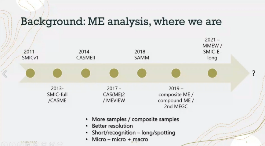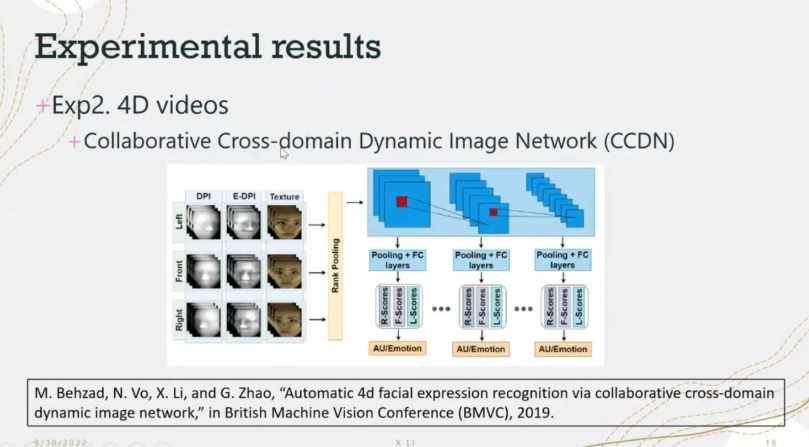 对普通面部表情的4D数据的研究已经取得了进展,但到目前为止还没有4D数据可用于微表情研究。在目前的研究中,李晓白博士介绍了4DME数据集:一个新的自发的微表情数据集,包括4D数据和其他三种视频模式。