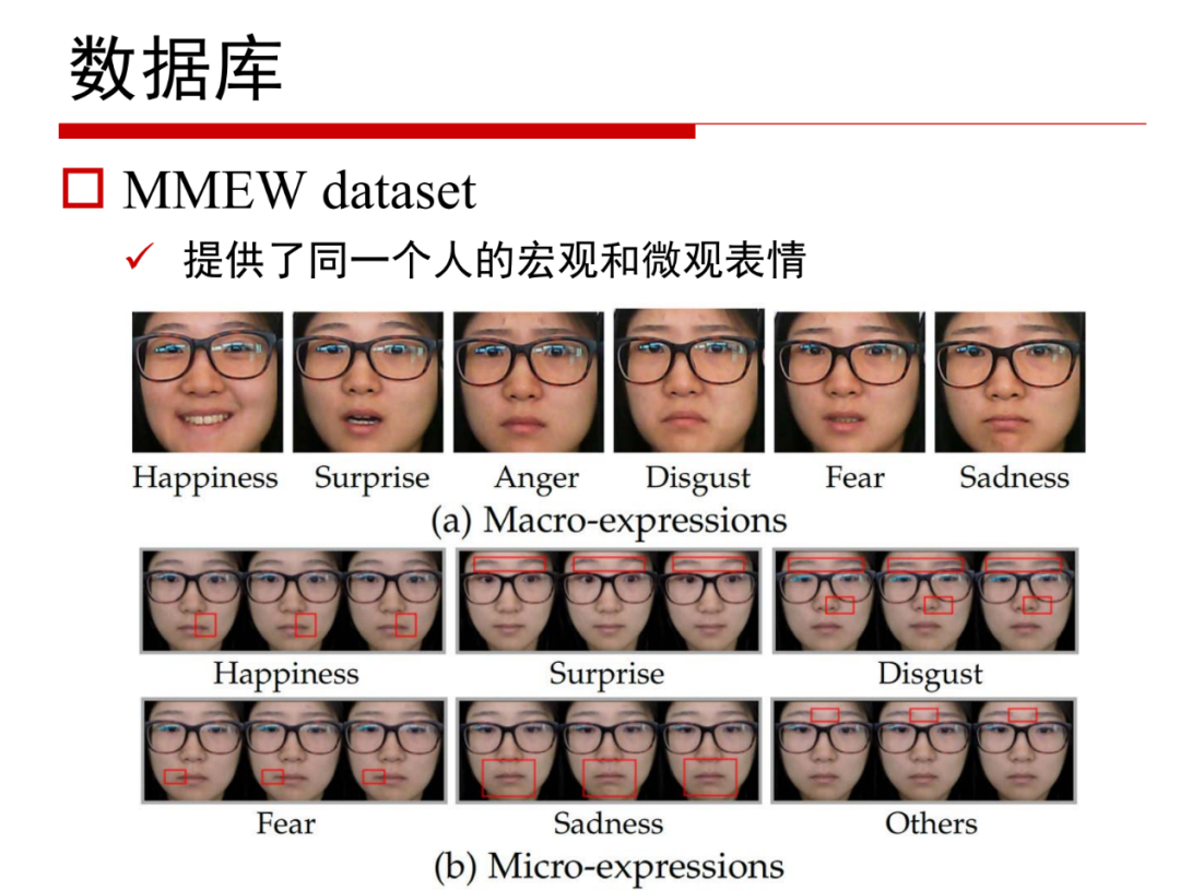 在这一部分,刘教授首先针对微表情提出了目前面临的三大挑战:缺乏数据库、微表情检测任务难、微表情识别任务难。微表情的分析任务和宏表情相关,但是是一个有特定难度的研究领域。