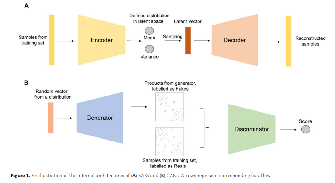 如上所述,蛋白质设计的主要任务是找到能够稳定地展示所需特性和执行预期功能的序列。此外,信息通路越长,中转点越多,通常会引入不必要的数据转换和传输,可能会造成较大的信号偏差。因此,原则上,直接映射蛋白质序列和功能的空间似乎比需要预先确定的结构拓扑作为中间媒介的设计程序更有优势。更重要的是,由于测序技术的进步,蛋白质序列数据的积累速度比结构数据快得多,尤其是宏基因组学的引入[114]。大量的未标记序列结合深度学习对特征提取、模式识别和目标生成的强大能力,使直接探索序列空间和改进蛋白质设计范式成为可能和有价值的。与蛋白质适应性景观搜索给定的主干不同,直接序列设计在潜在空间学习序列表示的有意义的分布,并根据学习到的分布派生出的推测表示在真实空间生成序列(图4)。因此,生成模型在这一领域的应用比判别模型更为广泛(如表2所示)。在这一节中,我们将通过具体的案例来关注直接蛋白质序列设计的两个主要方面,以回顾过去的成就并预测未来的趋势。