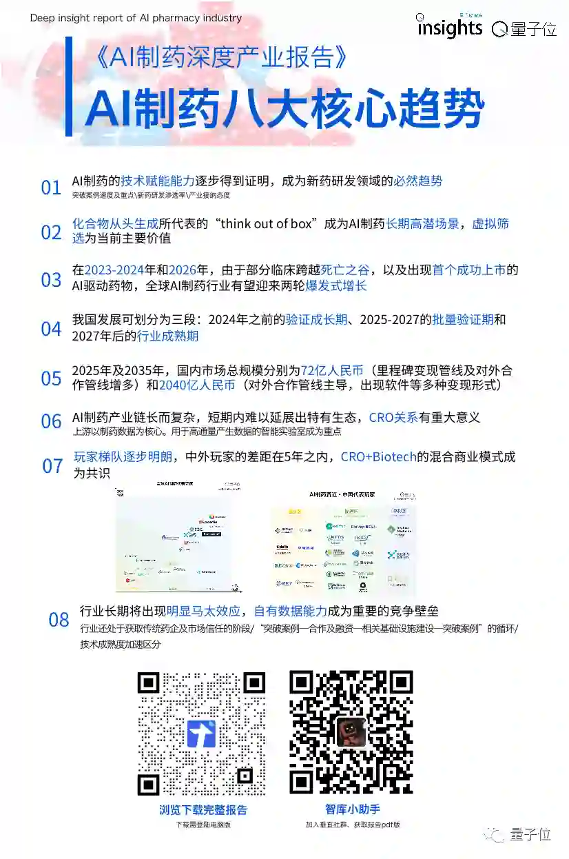 采访数十家机构并深入调研后,量子位智库撰写了《AI制药深度产业报告》,扫描下方二维码可下载完整报告。