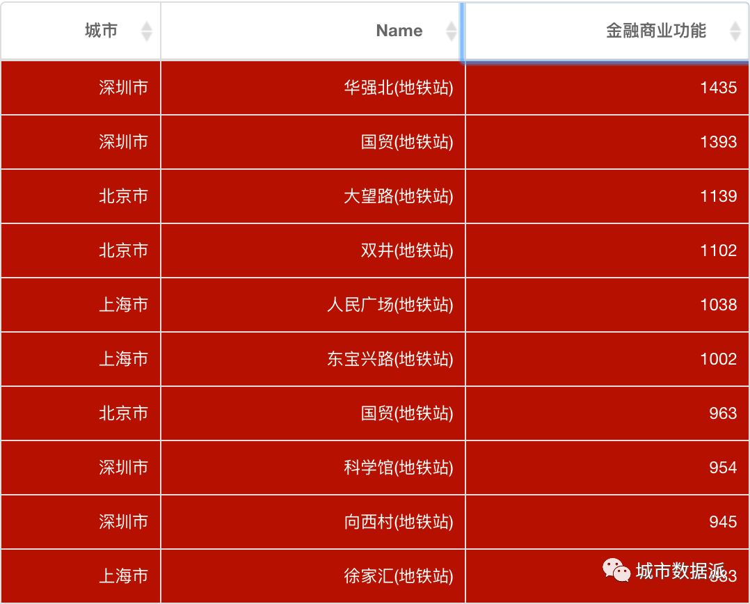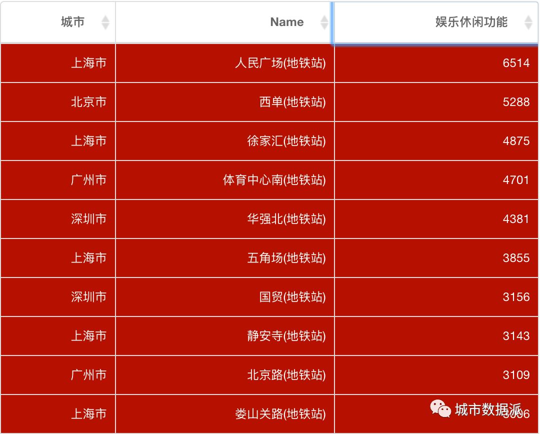 下面来看一下几个单项城市功能的地铁圈排名(取前十位)。
