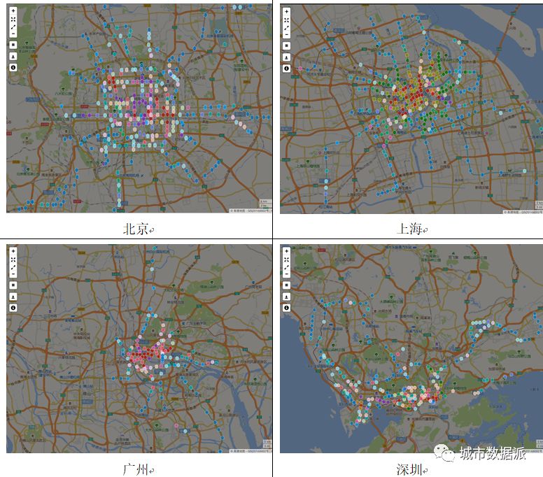 北上广深等国家中心城市日益成为“轨道上的世界”,地铁站点依托其强大的辐射能力成为承载大城市工作、生活功能的重要“城市坐标”。以地铁站为中心向外辐射的小区域,是城市的节点,周边聚集大量人流和各类资源。北上广深是中国的中心城市。北京是政治文化中心;上海是经济金融中心;广州是商业贸易中心;而深圳,是科技创新中心。这四个城市的地铁站周边城市功能,有什么差异呢?